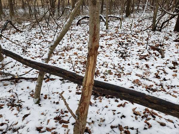 The wooded acreage features mostly rolling terrain with a healthy mix of mature trees, creating ideal stand locations and excellent hunting setup options. Deer sign is abundant throughout the property, with rubs, scrapes, and well-worn trails clearly showing years of consistent wildlife activity.