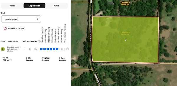 The land showcases Crockett loam soil, well-suited for grazing, livestock, and agricultural use, making it ideal for those seeking a rural lifestyle with functionality. With dual road frontage on County Road 1037 and County Road 1196, access is convenient and flexible. Enter through the gate on CR 1196 and follow the natural lay of the land to a beautiful elevated homesite overlooking a pond, offering scenic views and a peaceful setting.