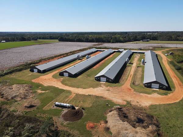 Seldom Rest Breeder Farm is a four-house breeder hen operation located in Henry County, Alabama, just outside Columbia and Headland. This farm is contracted with Pilgrim's - Enterprise Complex and produces a strong historical gross income of over $425,000 annually, plus bonus and litter income potential. The houses were built in 2015 and 2017 and measure 42x500 each, with 25-foot corridors and central egg collection via conveyor.