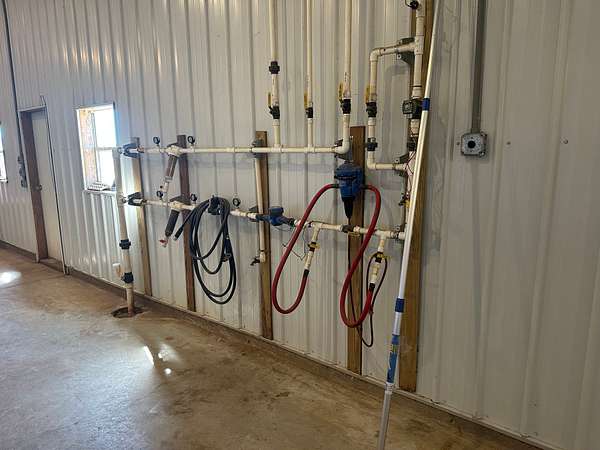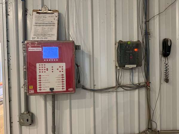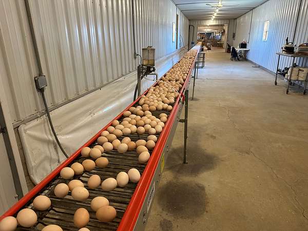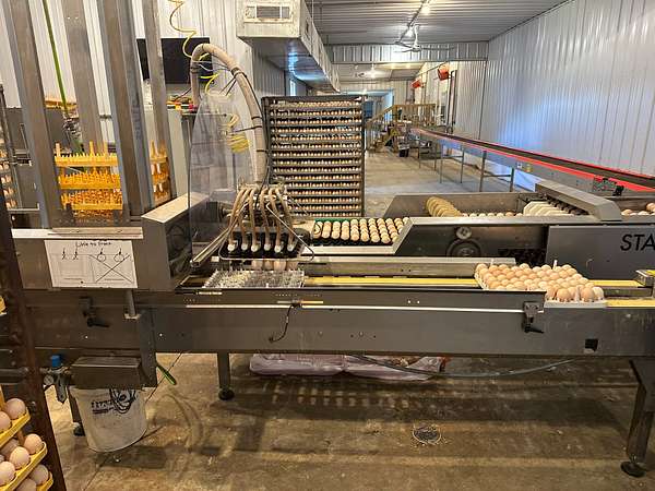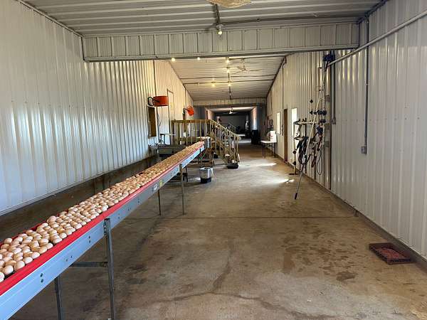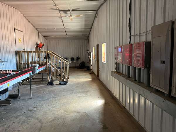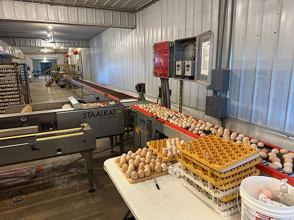 A STAALKKAT packer system, Choretime nest boxes, feeders, drinkers, plastic slats, curtain sidewalls, and modern controllers are featured throughout. The egg room is serviced by mini split HVAC units and conventional coolers. The farm has a 165kW Taylor generator, stainless steel composting drum, three deep wells, and Vortex Poly Fans in Houses 3 and 4. A security alarm system is installed on-site.
