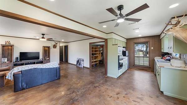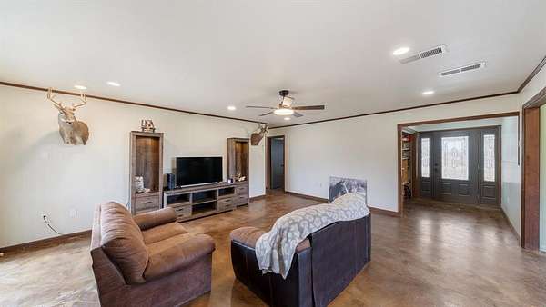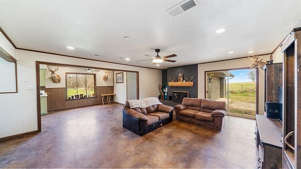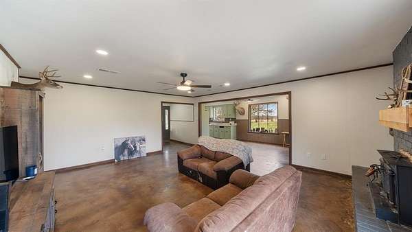 Outside, the land offers a perfect blend of open pasture and mature trees, ideal for ranching, recreational use, or peaceful country living. A barn adds functional space for animals, equipment, or storage.