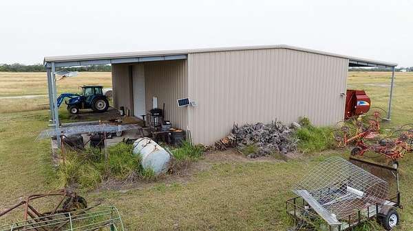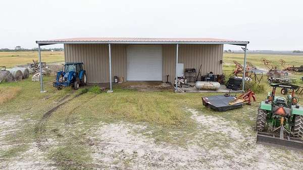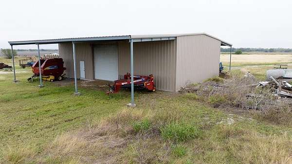 27.35 ACRES out of 45.664 Acres total. The neighboring homestead on 18.314 ACRES is also FOR SALE (MLS 468583). This pasture land is currently used to harvest hay 2-3 times a year, Coastal Bermuda grass. This fantastic regular-shaped tract features a 2400 SF barn built in 2014 and still in great condition. Sitting on a 60 x 40 foot concrete slab, this heavy duty barn has 20-foot wide lean-to's on the front and back, and both are 24 feet tall, meaning it can shelter anything from RV's and boats to Farm Equipment. With tall front and rear roll-up overheard doors and 2 convenient pedestrian doors, getting stored items in and out of here is a breeze. Being out in the County with lower taxes, this land doesn't have regular subdivision restrictions, so it can take horses, cattle and other livestock, manufactured homes, or divided with multiple single-family homes. So many possibilities, but of course it works great as the whole estate with home next door it's part of now, too. There is currently NO water or electric or septic specifically to this barn, however if buying entire estate then you could easily run utilities over from the house and garage on other tract.