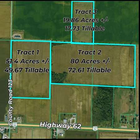 ONLINE ONLY AUCTION! 151 Acres +/- of farmland in Clay county being offered in 3 tracts. Tract 1: 51.4+- acres (49.67 FSA Tillable),Tract 2: 80+- acres (72.61 FSA Tillable), and Tract 3: 19.86+- acres (17.73 FSA Tillable). Bid now through January 30 at 6:00 PM. More information is available for the tracts and the auction upon request. To be offered on Hibid. Farmland.hibid
