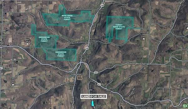 Discover this affordable 5-acre wooded recreational lot located just outside the small town of Greenwood NY in southern Steuben County. Situated along a paved road, the property is almost entirely wooded with a nice mix of hardwoods and an existing trail leading from the road onto the property. The land gently slopes down from the road, and the trail leads to a large open clearing tucked away at the bottom of the property, an ideal spot to build a camp or cabin of your own. Enjoy the convenience of year-round road access with electric available at the road, while still being just minutes from thousands of acres of public land. Turkey Ridge, Rock Creek, and Greenwood State Forests are all within a 5-mile drive, together offering more than 2,000 acres to hunt, hike, and explore. Anglers will appreciate the nearby fishing opportunities on Bennetts Creek and the Canisteo River. This rural retreat is perfectly located in the heart of Steuben County, approximately 40 miles west of Corning and 80 miles south of Rochester, making it an easy weekend getaway or future cabin site.