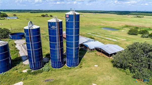 From Karnes City, take SH-239 south toward Goliad. Continue approximately 12 miles and turn onto Rockhill Road. The main ranch entrance will be visible along SH-239, marked by the historic grain silos.