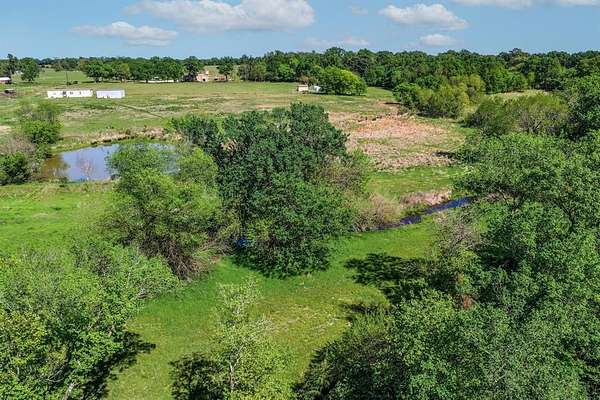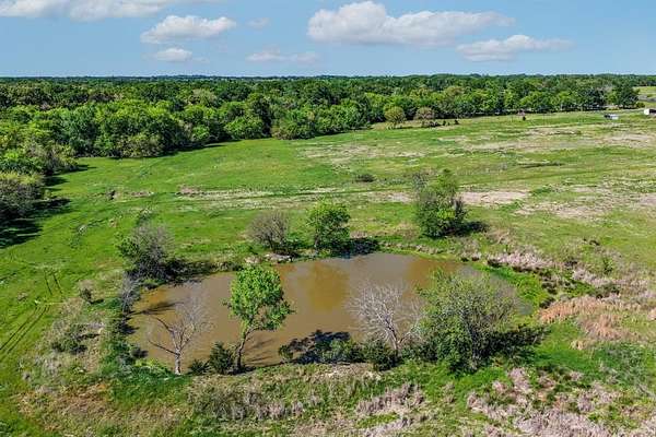 The land features a scenic pond ideal for fishing or watering livestock, along with a tree-lined creek that adds both character and natural wildlife habitat. The back portion of the property is wooded, providing excellent cover for deer and hogs, making this a strong hunting and recreational tract.