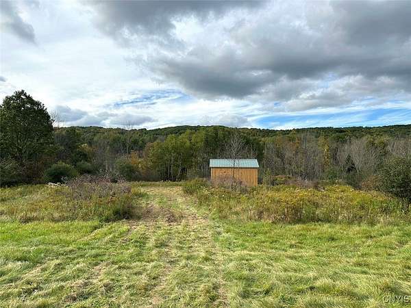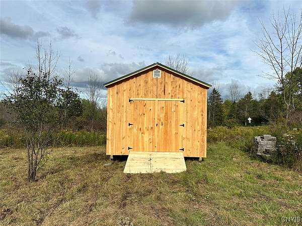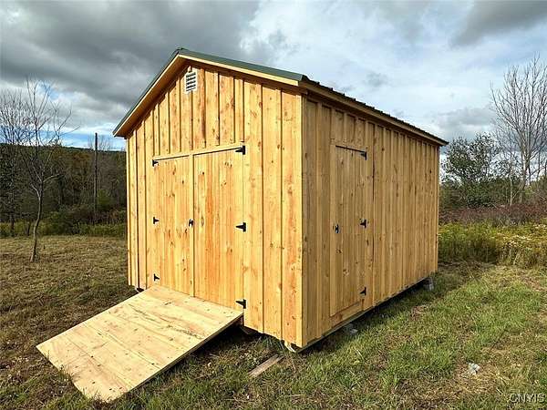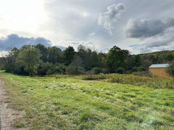 This 3.27 acre property includes an Amish-built building ideal for a campsite or basecamp and is located near state land in Grove NY, Allegany County. This is a great little property that feels much larger. It has plenty of road frontage and features a beautiful open meadow with scattered trees throughout. The land gently slopes toward the wooded back line. Electricity runs through the middle of the property, just below the Amish-built building. The building is 10 x 14 and provides a good place to store gear and take shelter from the weather if needed. With its quality craftsmanship and ample square footage, the shed is well-suited for off-grid living, though electricity is available at the road. Located less than a half-mile to Keeney Swamp Wildlife Management Area which has over 708 acres of public land, and Keeney Swamp State Forest which has another 2,400 acres of public land. There are miles and miles of road and trails throughout. Just a few miles north is Swain Ski Resort to enjoy in the winter, and to the south is the Birdsall Inn. The property is surveyed, and all rights convey.