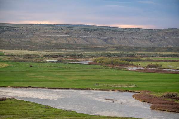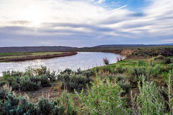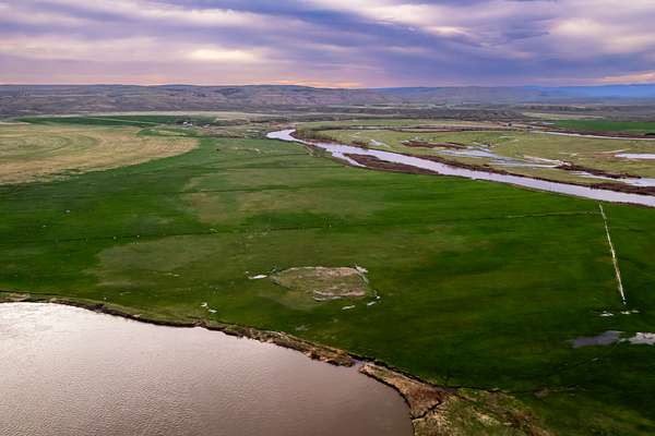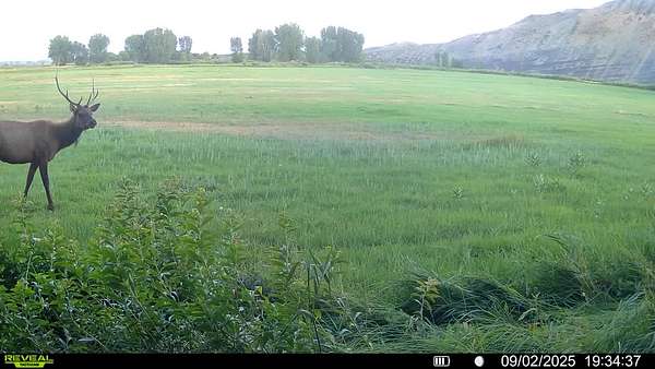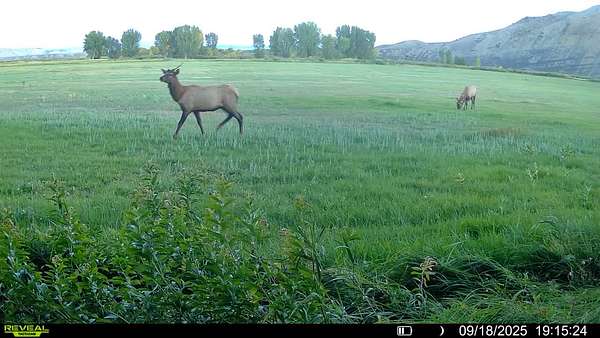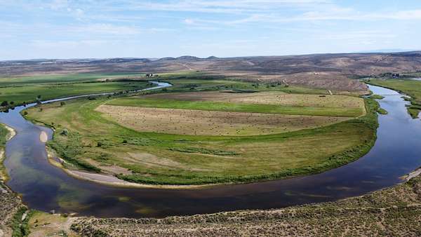 The land extending from the river banks features lush, productive hay meadows irrigated by flood, pivot, and gated pipe systems, making it ideal for livestock grazing and a year-round haven for wildlife. A dramatic, steep rim serves as a natural backdrop, providing privacy and seclusion for both livestock and the diverse wildlife that roam the meadows below. Elk, deer, and other species are frequently spotted throughout the year, drawn to the abundant feed and easy access to water along the thick, wooded riverbanks. In addition to the hay meadows, the ranch includes dense, deep juniper draws and open benches that offer varied terrain and habitat, perfect for wildlife. The plentiful feed and water resources attract impressive populations of elk, deer, and antelope, particularly throughout the winter months and into the spring.