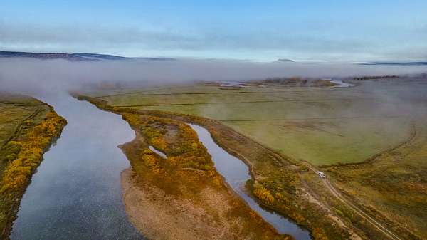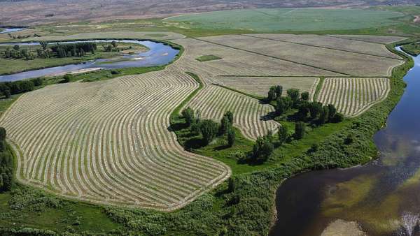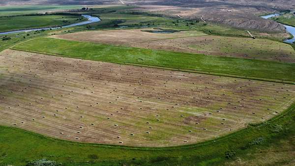The ranch also features several improvements, including a small residence, a detached garage, lean-to shelters, and well-maintained corrals, all with scenic views of the river, hayfields, and distant mountains. With its diverse offerings, this ranch is more than just a working property; it's a place where dreams can become a reality.