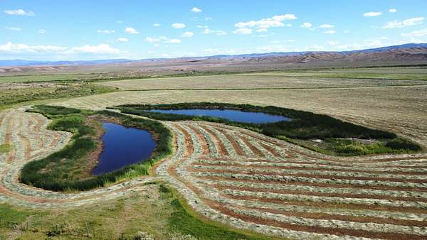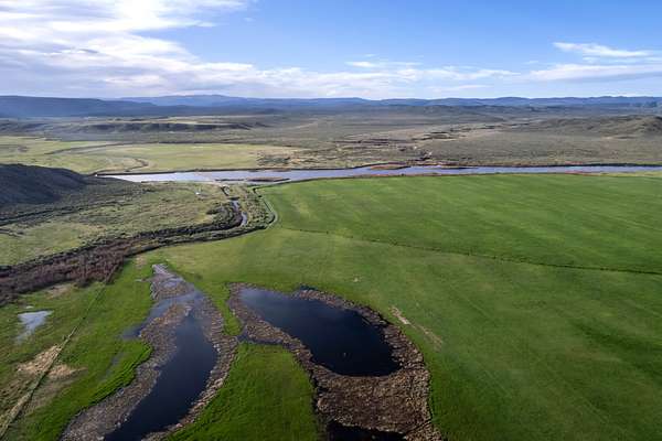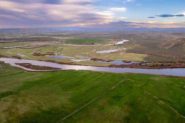 As one, the ranch includes 700+ acres of irrigated hay meadows and highly productive bottoms fed by flood, pivot, and gated pipe systems. These meadows are not only ideal for livestock, but serve as a natural magnet for wildlife thanks to ample feed and easy access to the river. Water rights are robust, with 42 CFS allocated across the irrigated ground, supplemented by springs scattered all throughout the property.