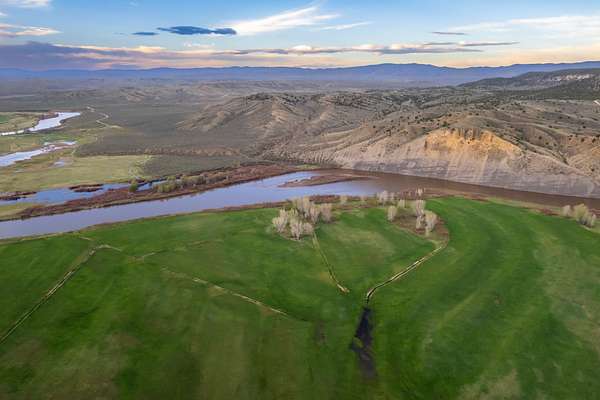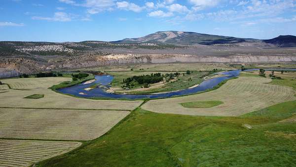 Double Slam Ranch, an expansive ranch featuring a unique assemblage of the Thunder S Ranch and the 3D Mountain Ranch. Encompassing 7,973 deeded acres with over 8600 acres of BLM and state grazing allotments, this rare assemblage features nearly five miles of Yampa River frontage, 700+ acres of irrigated hay meadows, 42 CFS of water rights, dramatic terrain, excellent wildlife habit, along with multiple wells and springs!