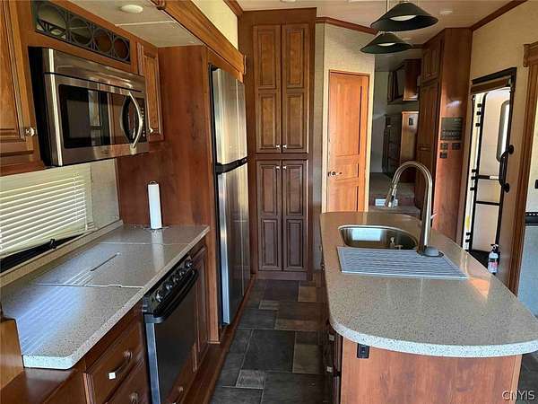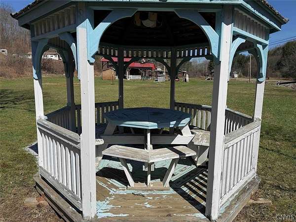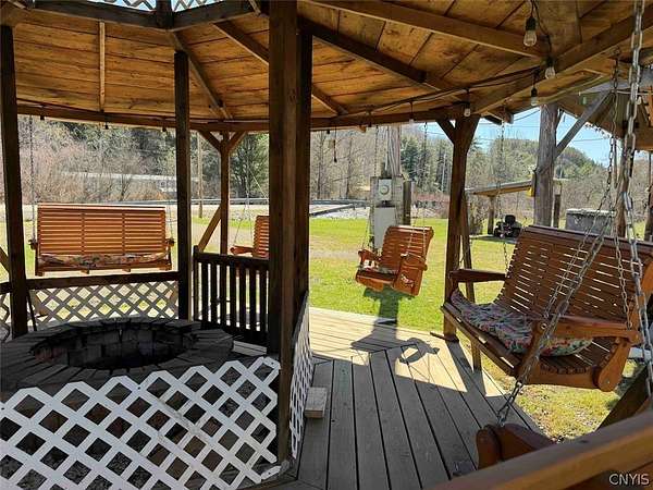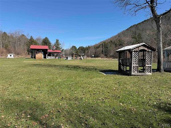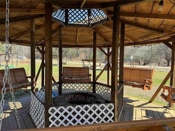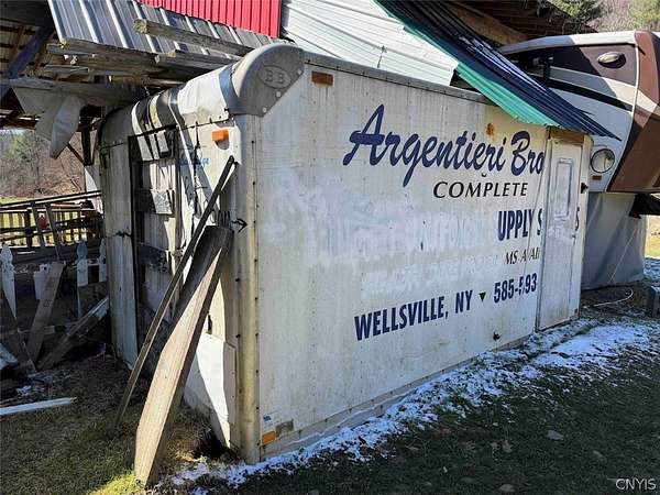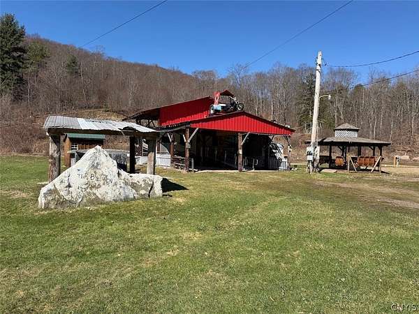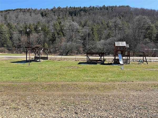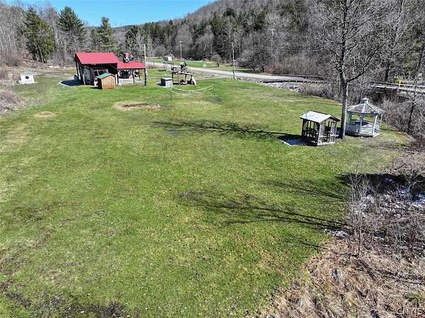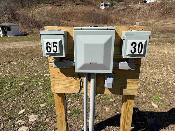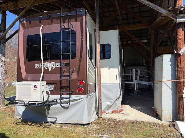 This 1.7 acre property includes a camper and multiple RV hook ups including all utilities located in Alma NY, Allegany County. A unique opportunity awaits. This property is designed to hold multiple campers. There are 6 total RV hook ups, two 50 amps and four 30 amps. There is a 1,500 gallon septic tank which has been county approved. Five out of the six sites have septic and water hook ups. There is an outdoor public bathroom with an on-demand hot water and pressure tank. Also, included in the sale is a 2017 Bighorn 5th wheel camper in top tier condition. There has been a split unit heating and cooling system installed. The RV is covered by a large open staple pole barn with plenty of open space. There are multiple sheds, a one-of-a-kind covered porch, and a fire pit with hanging swings. The land is all open with plenty of room to add on and enjoy the outdoors. The well on the property is shared with the neighbor. The property has 260 feet of road frontage. Annual taxes are $468.86. Great opportunity! Surface rights convey. This property is located approximately 6 minutes from Alma Pond, 13 minutes from Shinglehouse PA, 16 minutes from Wellsville NY, 35 minutes from Olean NY, 1 hour 5 minutes from Ellicottville NY, and 1 hour 50 minutes from Buffalo NY.