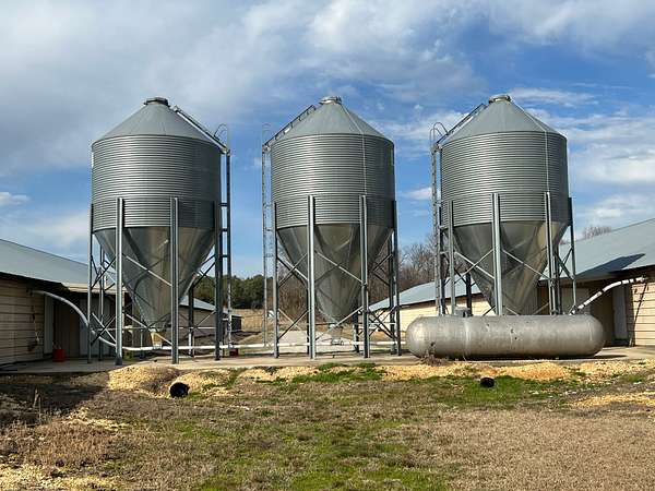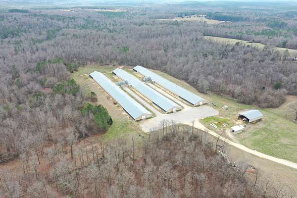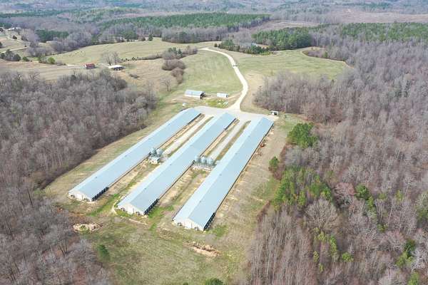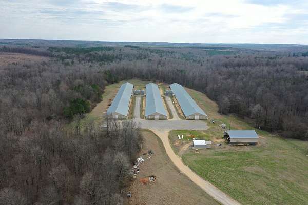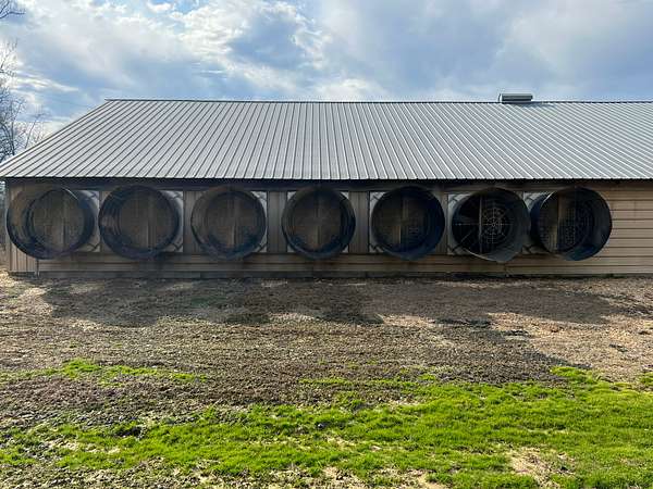 The farm sits on approximately 40 acres, offering privacy and space for expansion, livestock, or other farming opportunities. It is located in a strong poultry-producing region with convenient access to integrator services and support.