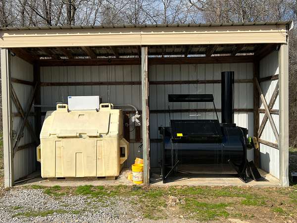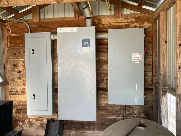 Poultry house equipment includes 54-inch and 48-inch Munters fans for powerful ventilation, Rotem controllers and a Total Radio wireless alarm system, LED lighting with dimmers, natural gas heat, and two-inch water lines for consistent performance. The farm is equipped with a Taylor generator for backup power and a new incinerator for mortality management. It has 7,000 gallons of water storage in addition to county water access. A litter shed is in place for on-farm waste management. The sale includes farm equipment such as a tiller and a decaker to help maintain house conditions.