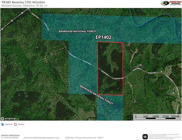 30+- acres south of County Road 2Both tracts adjoin Bankhead National Forest and share the same outstanding features and recreational potential as the full property.
