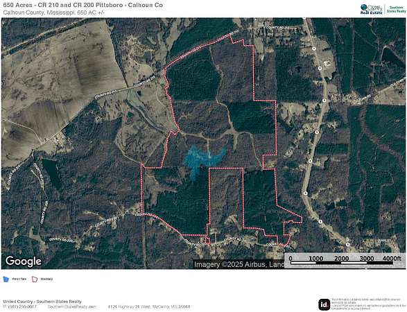 Large Acreage Timberland with Pond and Lake Site in Mississippi650 Acres - Managed Pine & Hardwood Timberland with a Lake Site - Calhoun County, MS. Located just 2 miles south of Bruce in Calhoun County, Mississippi, this 650+/- acre timberland tract offers a rare combination of investment-grade timber and recreational opportunities. The property features a well-maintained interior road system that makes the entire tract accessible, along with rolling hills, a 2.5-acre fishing pond, and an outstanding site for building a 25-acre lake supported by more than 100 acres of watershed. In addition, a dirt pit on the property offers the potential for substantial supplemental income alongside the timber revenue. The timber has been professionally managed with approximately 340 acres in pine stands ranging from pulpwood to sawtimber, and 300 acres in 20-year-old hardwood. With a variety of age classes in place, this property is set up for steady returns through timber thinning and selective harvests. Its proximity just 2 miles south of the Weyerhaeuser mill in Bruce ensures top dollar when pine timber is harvested. Beyond its investment value, this property is a sportsman's paradise. Year after year, it consistently produces excellent deer and turkey hunting thanks to its diverse habitat, strategic timber management, and proximity to farmland. With paved road frontage on both the north and south sides, access is convenient for timber harvesting and enhances the potential for future re-sale in smaller parcels. The primary entrance in the north side is from County Road 210, a quiet paved road with very little traffic, offering privacy and seclusion. Several hilltop sites are perfect for building a home, cabin, or hunting camp. This is a rare opportunity to own a large, well-managed timberland property that not only generates income through timber and other resources but also provides premier outdoor recreation and long-term land appreciation. A true hedge against inflation, this tract checks every box for the serious land investor, outdoorsman, or those seeking a legacy property to enjoy and pass down.