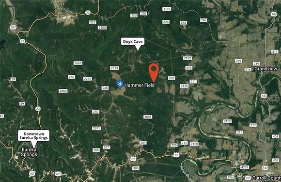 From Main St in Eureka Springs, east on Hwy 62. Continue east on Hwy 62, north onto CR 211. Continue north, property will be to the west and runs along CR 207 as well.