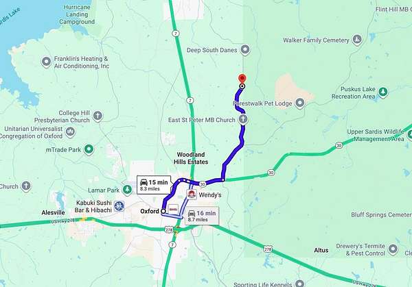 WELCOME TO THE WOODSON RIDGE 84.5--a premier cattle, hunting, and recreational tract in Lafayette County, Mississippi. Located just south of Abbeville and less than 9 miles from Oxford, this 84.5 acre property is a rare, well-managed piece of North Mississippi land. Approximately 50 acres of established, fully fenced pasture feature heavy-duty 12-gauge, 5-strand fencing, multiple heavy-use feeding areas, and over a half mile of underground water lines, along with a 4060 pole barn, elevated covered kennel, and powered shipping container for secure storage. The "Back 40" has been managed with prescribed fire rotation, creating excellent bedding and feeding habitat, while a mature pine stand along the rear boundary serves as a turkey roost with a history of quality whitetail and gobbler harvests. With an extensive internal road and trail system, Woodson Ridge 84.5 is a turnkey property offering cattle production, recreation, and long-term investment potential.