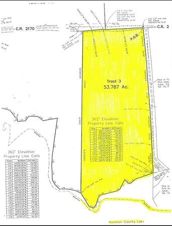 LAKEFRONT DEVELOPMENT OPPORTUNITY - HOUSTON COUNTY LAKE! Nestled in the serene embrace of Houston County Lake in Grapeland, TX, this expansive tract offers a rare canvas for your vision, blending untouched natural beauty with endless possibilities. A newly mulched trail along the full length of the property guides you from the entrance straight to the shimmering lakefront, inviting exploration amid towering hardwoods and resilient pines that stands as timeless sentinels, ready to frame whatever dream you dare to build. Whether you're a savvy investor eyeing the potential to craft a premier lake community or a seeker of solitude desiring a pristine, undeveloped retreat, this land whispers promises of legacy and leisure. Boasting approximately 1,465 feet of waterfront on Houston County Lake's shore, complemented by 350 feet of public road frontage, access is effortless and inviting, ensuring your haven remains both secluded and connected.