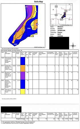 Andrew County Combination Farm--95 Acres on the Platte River. Discover this versatile 95-acre mol farm in Andrew County with direct frontage on the Platte River. This property includes 25.5 mol acres of high-quality bottom ground consisting of Class II soils and an overall NCCPI rating of 93 and 81, plus 10 acres mol currently in hay that could be converted to row crop. The remaining 41 acres mol consists of pasture that is fenced and crossed fenced and includes a pond, plus two spring-fed streams that run year around. Located just 9 miles from Savannah, this farm offers a perfect combination of quality, productive cropland, hay ground, and pasture. Schedule you private tour today. Directions:From St. Joseph, take Highway 169 north approximately 15 miles and turn left (west) on to County Road 223. Go approximately 2 miles and turn right (north) on to County Road 221. The farm is on the west side of the road and starts 2/10 of a mile after the turn onto County Road 221
