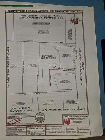 Est $7,029/moPresenting an exceptional 102+ acre land opportunity in a highly desirable location just minutes from Canton, TX. This property boasts over 1093 feet of frontage on County Road 2405, ensuring excellent access and visibility. One of the key features of this parcel is the availability of electricity and water, making it immediately suitable for a variety of uses. Zoning offers flexibility of residential, agricultural, or recreational development. The land features a mix of mature timber and open areas, providing both beauty and potential.