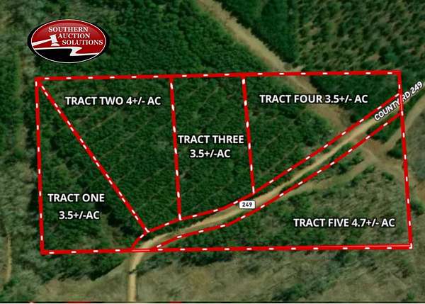 Tract 4: 3.5 acres +/- Unrestricted Land AUCTION: 19+- Acres Unrestricted Land | 5 Tracts or Whole | Randolph County *This is an auction and the value price listed does not reflect the selling price or value of this property. ** Online auction ends Tuesday, February 24th at 6pm CST. Bid on one tract, multiple tracts, or all. Property sells in combination bringing highest total value. Location: County Road 249, Randolph County - 8 miles from Wedowee, 25 miles to I-20/Oxford, 90 miles to Birmingham or Atlanta. Gravel road access offers privacy with highway convenience. Property: 19+- heavily wooded acres outside city limits. NO restrictions, zoning, or HOA. Residential power available nearby. Build home, place mobile home, or develop as desired. Tracts Available: Tract 1: 3.5+- acres Tract 2: 4.0+- acres Tract 3: 3.5+- acres Tract 4: 3.5+- acres Tract 5: 4.7+- acres All tracts have road frontage on CR 249. Septic & well required. Highlights: Unrestricted use, lower taxes, wooded privacy, flexible tract sizes, strategic location between major metros, affordable land ownership opportunity.