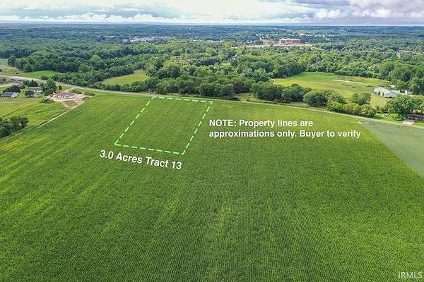 Est $861/mo3 Acre lot in Middlebury Schools, Very Convenient Location between Goshen and Elkhart, first time property has been available for more than a generation. Subject to Restrictions (See attached Draft), Sale Subject to 2025 Crop Rights, See attached Drawing, Subject to Survey, Taxes are for entire parcel divided per acre.
