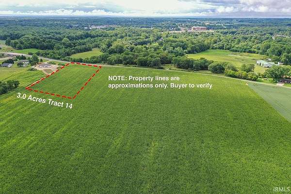 3 Acre lot in Middlebury Schools, Very Convenient Location between Goshen and Elkhart, first time property has been available for more than a generation. Subject to Restrictions (See attached Draft), Sale Subject to 2025 Crop Rights, See attached Drawing, Subject to Survey, Taxes are for entire parcel divided per acre.
