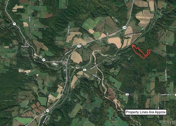 This hunting and recreational property borders the Genesee River consisting of 40 acres located in Fillmore NY, Allegany County. The land is a mixture of hardwoods and pines and is mostly wooded. The terrain is a mixture of level areas and rolling hills. There is an open field located right off the road which would be a great place to build a home or cabin. There are ATV trails throughout the property for easy access. Whitetail deer and turkey sign throughout making this a great hunting tract. The property extends across the street to border the Genesee River. There is an easily accessible trail that leads right down to the river for great fishing. Great and rare opportunity to own some river frontage. All rights convey. This property is located approximately 4 minutes from downtown Fillmore NY, 20 minutes from Nunda NY, 28 minutes from Arcade NY, 58 minutes from Batavia NY, 1 hour 10 minutes from Rochester NY and Buffalo NY.