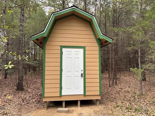 Tucked away on two tree-filled acres just minutes from Purtis Creek State Park, this charming one-bedroom tiny home offers the perfect blend of simplicity, privacy, and potential. Surrounded by nature, the property provides a peaceful, quiet setting—ideal for those seeking a relaxing getaway or envisioning the start of a future country homestead. In addition to the cozy home, the property includes a spacious 20x30 metal building, two storage sheds, and a metal shipping container, offering ample room for tools, equipment, or hobby space. The abundance of trees enhances the sense of seclusion while creating a serene backdrop for outdoor living. While the home does not currently have plumbing, it is equipped with a commercial composting toilet housed in its own separate structure, providing a practical off-grid solution.