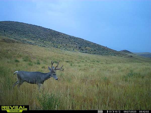 The terrain is primarily comprised of rolling dryland fields ideal for grazing and hay production, transitioning into sagebrush-covered hills and scenic drainages that wind through the western portion. Natural springs and seasonal water features support livestock and attract abundant wildlife, including deer and antelope, making it a haven for hunters and ranchers alike.