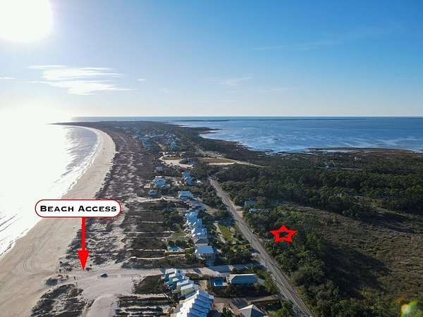 From Port St Joe head east on SR 30 just past Cape San Blas Road. Pass the entrance to Water's Edge Subdivision and Property is on the left across from the beach.