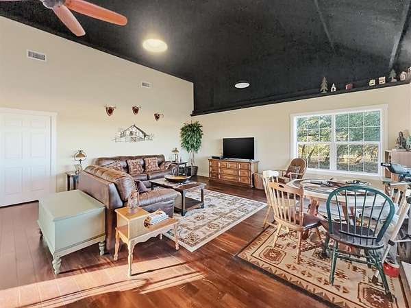 Escape to the heart of the Texas countryside on this versatile 83.5-acre property, perfectly designed for the avid hunter and weekend getaway seeker. The centerpiece is a pristine 1,225 sq. ft. 2-bedroom, 1-bath barndominium featuring a spacious open-concept layout. The expansive kitchen, living, and dining areas flow seamlessly, highlighted by the efficient central heat and air.