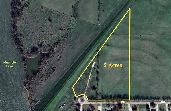 Possible OWNER FINANCING! 5 acres right next to Muenster lake! Property boasts beautiful views of the lake from the north end of the property. 2nd story of a home build could have clear and expansive views of the lake. Walk to the lake for hiking, fishing or even small boating. Distance to the lake is approximately 300 yards (a short walk). You dream it, you can build it! Land is flat and easily buildable. Muenster boasts 2 fantastic schools, both private and public. Family centered community. Come view the property, let your imagination run wild, and build your future here in Muenster!