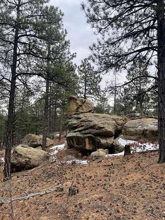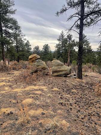 Est $856/moOne of the more beautiful lots in our county, 45+ acres thats an island of tall standing Ponderosa Pines. One of the highest spots (7800') in that area with easy access. Power is on the road, a road that encircles the entire huge lot. Several ideal driveway locations and many, many house sites to choose from. Tons of interesting rock formations. Mountain views, with selective tree trimming. Remnants of petrified wood here and there. Full of wildlife too. Remote with few neighbors. Old horse shed still standing. Water tap is NOT included.