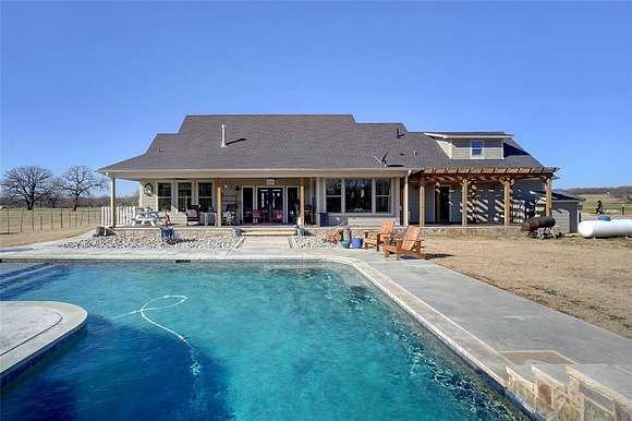 This vast ranch property features good grasses and woods. It has fences and cross fences throughout. The ranch boasts 3 stock tanks, a barn and a water well. A custom home with some of the best sunrises and sunsets around. The home has a great open floor plan with plenty of windows to provide wonderful natural light. Split bedrooms downstairs provides a primary suite and adjoining office space, and then 2 more spacious bedrooms and guest bath. Upstairs is a 4th bedroom and bath. The home enjoys CITY water, too. The pool and large covered porch makes such a restful area, yet large enough for entertaining groups. Come enjoy country living in seclusion, yet minutes from Bridgeport without city taxes!