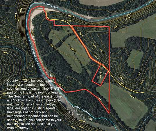 With over 1/2 mile of crystal-clear Bryant Creek frontage, a newly cleared build site, electricity on site, and a well, Martin Bend offers one of the most usable and ready-to-enjoy river properties in Southern Missouri near Dora.Located where the county road dead-ends at the river, this diverse 73-acre tract features expansive gravel and sand bars, fertile hay bottoms, and a mature hardwood ridge with breathtaking views. Approximately 15 acres is a river bottom hay field with only 5 acres of that technically in the flood plain (but has not showed signs of flooding in the most recent record-breaking years). The hay fields sit high, and the timbered edges gently slope to the river... all of the river frontage is accessible, which is a river property rarity. Just 1.5 miles downstream from Hodgson Mill Spring--which produces over 23 million gallons of water daily--the water along this stretch is exceptionally crisp and clear.On the 14.5 acres that lies north of the county road, a new build site and its views to the river bottom has been cleared. A cabin site or camper spot has been leveled and an updated transformer and meter set. There is a 150ft deep well that has been inspected by a well company and $3,500 to modernize it. Nearly a 2 mile float from Sycamore (Hodgson Mill area) and 5.5 miles to Warren Bridge. Fish and float from your own private gravel bar, or continue downstream to multiple take-out points. With abundant usable ground and endless possibilities, Martin Bend is a premier opportunity to own a legacy river property. Seller will not be offering this property to developers.Bring your kayak and fishing rod -- the river life is waiting. Check out video: