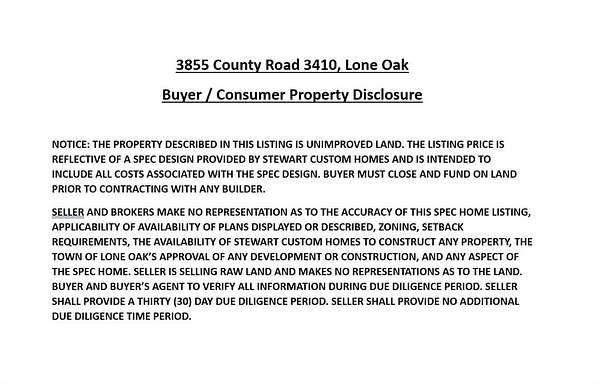 Hwy 380 towards Greenville, South on US 69 about 17 miles to Lone Oak. West on Old Mill St FM 513, South on Old Hwy 42 FM 513 to CR-3410. West on CR-3410. Take this all the way to the closed gate.