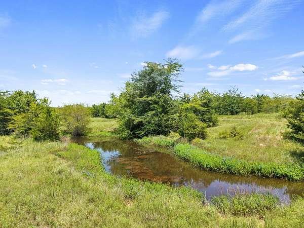 White Oak Creek runs through the land, complemented by a scenic 6-acre private lake and six additional ponds. The property supports diverse wildlife including ducks, deer, turkey, hogs, and fish, making it well-suited for hunting and year-round recreation.