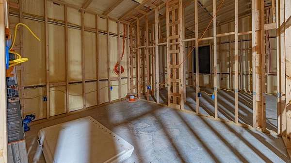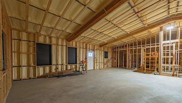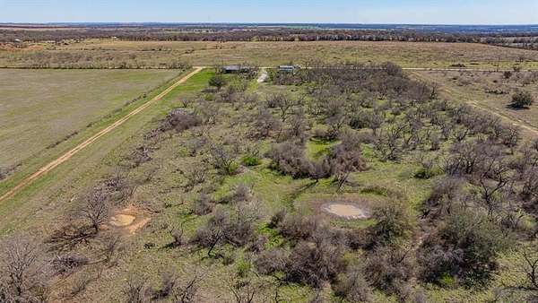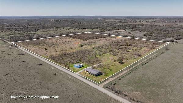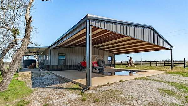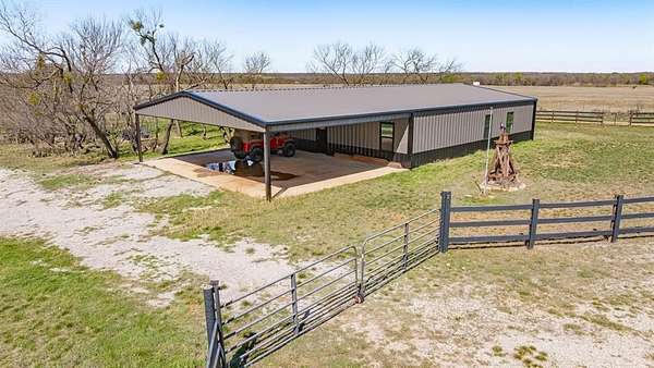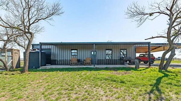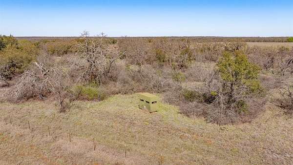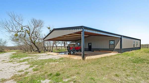 The land features mostly level native pasture with scattered trees typical of the area. A trail system runs throughout the property, allowing access across the acreage by ATV or side-by-side. Several established shooting lanes are already in place, making the property well suited for recreational shooting or hunting. The centerpiece of the property is a 2,000± sq. ft. barndominium shell (40’x50’) that has already been framed and is ready for a buyer to complete to their personal taste. The structure features 10-foot exterior walls with a 14-foot center height, creating an open interior layout with excellent potential. The entire interior has been insulated with 2-inch spray foam, providing energy efficiency and comfort. Much of the essential infrastructure is already completed, saving a future owner significant time and expense. Electricity is connected, the septic system is installed and hooked up, and all interior plumbing has already been run. The property also includes a 2,500-gallon poly tank designed for rainwater catchment. Additional improvements include a 10’x40’ covered porch, perfect for relaxing and enjoying the surrounding countryside. A 40’x30’ covered parking area provides ample room for vehicles, trailers, or equipment. There is also a separate shop building ideal for storing side-by-sides, tractors, tools, and ranch equipment. For added safety, the property includes a 12-person underground storm cellar. The property supports a healthy population of native wildlife including whitetail deer, turkey, dove, and other small game commonly found in the area. With existing trails and shooting lanes, the acreage is well suited for hunting or simply enjoying the outdoors.