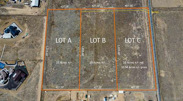 An exceptional offering of one of three 10-acre parcels in Brighton, each showcasing sweeping panoramic views of the Front Range. These newly created lots feature level topography, easy access, and no HOA, providing a rare combination of usability and freedom.