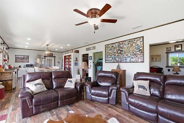 The land itself is equally appealing, featuring lush pasture ready for grazing livestock or horses. One stock tank provides fresh drinking water for animals. With wide-open spaces and beautiful country views in every direction, you’ll enjoy the peace and freedom that comes with true ranch living. A water well services the property, offering added independence and reliability—an essential feature for rural living.