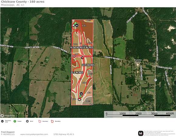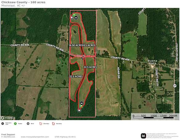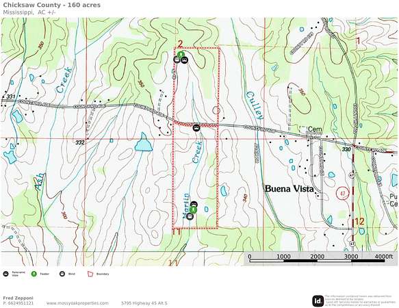 Located in Southeast Chickasaw County near the Buena Vista Community, this 160+- acre property offers a rare combination of productive farmland, diverse terrain, and established recreational improvements.