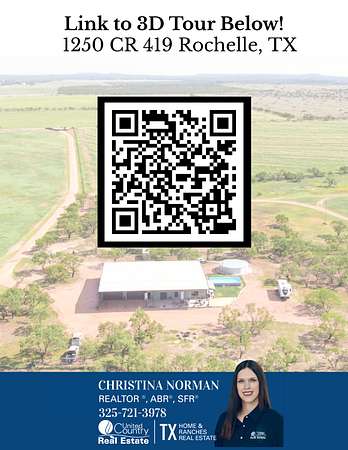 Welcome to 1250 CR 419 in Rochelle, Texas--a one-of-a-kind property where modern luxury meets Texas ranch living. This 9,000+- square-foot barndominium is being offered on 42+- acres, making it an ideal size for buyers seeking a manageable piece of land without sacrificing the amenities of a full-scale ranch. Designed with both comfort and functionality in mind, this estate combines upscale living, sustainability, and outdoor adventure in the heart of Central Texas.