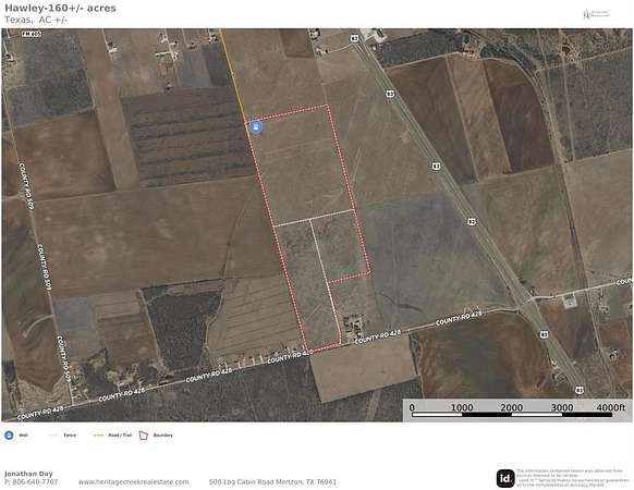 Explore the opportunities with this approximate 160 acres along CR 428 near the quiet rural community of Hawley, Texas. Located a quick 15 minute commute from North Abilene and the new data center, this versatile property offers endless opportunities. Whether you're looking to establish a working farm or ranch, plant crops, build a dream home you've always imagined, or develop for future growth (rural acreage subdivision? RV park? new custom homes? Solar farm?, cow-calf operation? commercial? family compound?), this acreage will provide. Quality grasses, cross-fenced pastures and community water availability offer a new owner numerous options to be creative. Enjoy boundless opportunities within a short drive of big city conveniences. There is an existing water well and electrical service on the North side of the property for watering livestock. This acreage is ideal for development, investment, recreation, or building a legacy for generations to come.