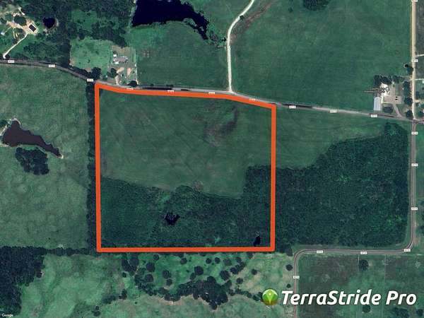 Acres: 40.33 ± Acres. Price: $314,574. Terms: No owner financing. Location: De Kalb, Texas, Bowie County. Comments: Beautiful country living site. 50% mature hardwoods, 50% meadow. Good county road access on one side. Extremely nice homes in the neighborhood. Electricity is available at road. Improvements: No improvements. Water: Two ponds. Will need to drill water well. De Kalb, Texas gets 53 inches of rain, on average, per year. Terrain: Relatively flat ground. 50% trees. Sandy loam soil. Fences: None. Grasses: Native grasses. Game: Whitetail deer, wild hogs occasionally.