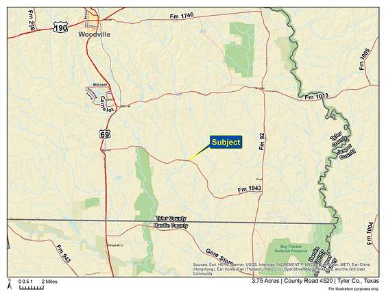 Travel east on FM 1943 from Warren, Texas. In approx. 8 miles, turn left on CR 4520. Property is approx. 1/4 mile on left.