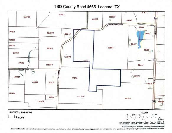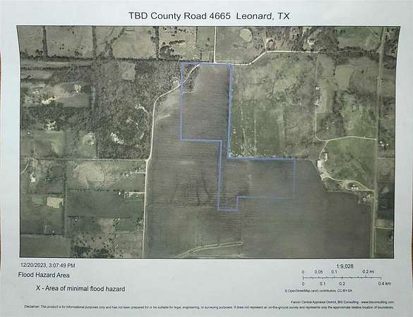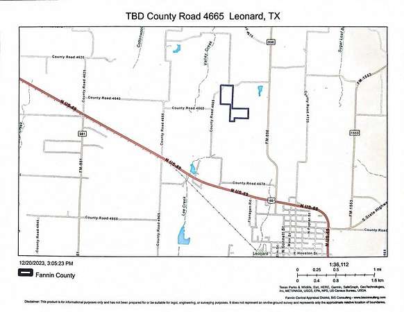 This property has 45 +- acres and is located North of Leonard on a Quiet Country Road. There are approximately 42 +- acres in Dry Crop and 3 +- acres are wooded. In the wooded area, there is an Old Farmhouse, several older outbuildings, a Storm Celler, and an Old Log Structure Barn that was possibly a Log Home at one time. There is a small piece of the property that is located on the North side of the county road that has a couple of barns. Electricity is located on the north side of the county road. Water is available with Arledge Ridge Water Supply. The Dry Crop land is currently leased, and the planted crop is to be harvested by the lessee. This would be a great property for a Developer, Your New Home, Hunting, or Investment. Located less than an hour to the DFW Metroplex for easy access.