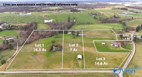 Est $2,256/mo39 PRIME acres of CLEARED beautiful terrain providing usability for a homesite or livestock. RARE OPPORTUNITY to own 2 ponds, creek, pole barn, fenced, flat open land offering wide views. Whether you are dreaming of building a private estate, starting a farm, or creating a peaceful country retreat, this expansive property provides space and flexibility to bring your vision to life. Escape the noise and enjoy the freedom. Close to hwy 75 and only minutes to Albertville, Boaz, and Geraldine. No mobile homes, No poultry farms.