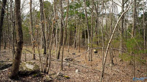 This 20.5+/- acre tract on the west slope of Sand Mountain sits 4 miles from Stevenson via a private gated road off County Road 491 and 1.5 miles from the Captain John Snodgrass Bridge. Located on the southeast side of the Tennessee River, it features hardwoods and cedars, strong wildlife habitat, natural rock formations, and mostly sloped terrain with usable benches. Blinds, stands, and feeders are in place, making it turnkey for turkey hunting this spring or deer hunting in the fall. This tract offers both recreational enjoyment and long-term investment potential in a highly desirable mountain setting. Not suitable for building.
